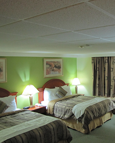 We are offering this bedroom with a two queen beds. Two to four guests can have this bedroom. Room has fridge, microwave, phone, TV, coffee table and study table and chair..